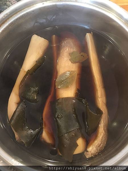 1. 自製昆布醬油:剪一小段昆布,昆布不要洗,擦乾就好,加醬油 、 糖 、 味醂 、 水 、 月桂葉,先把昆布泡開,接著把醬油昆布等煮滾,熄火待涼。